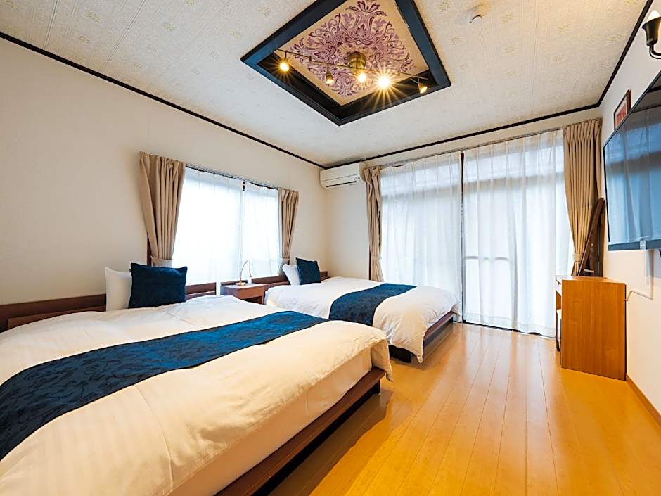Providing free toiletries, this family room includes a private bathroom with a bath, a shower and a bidet. Guests can make meals in the kitchenette that comes with a refrigerator, kitchenware and an electric kettle. The spacious air-conditioned family room provides a flat-screen TV with streaming services, a washing machine, tatami and a dining area. The unit offers 3 beds.